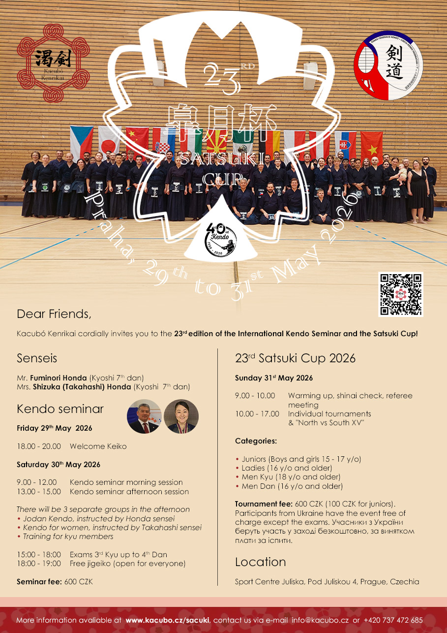 V neděli proběhne Pohár Sacuki, mezinárodní turnaj Kendó s tradicí od roku 2002. Je to dobře zorganizovaný turnaj s unikátní atmosférou o který určitě nechcete přijít! Každý rok se jej zúčastní mnoho členů národních týmů několika zemí.