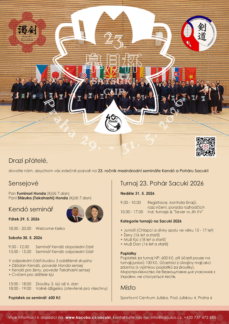 V neděli proběhne Pohár Sacuki, mezinárodní turnaj Kendó s tradicí od roku 2002. Je to dobře zorganizovaný turnaj s unikátní atmosférou o který určitě nechcete přijít! Každý rok se jej zúčastní mnoho členů národních týmů několika zemí.